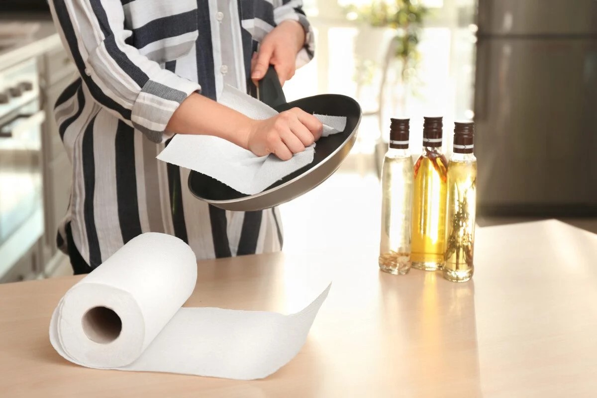 Het gebruik van een papieren handdoek is vooral handig bij het schoonmaken van een kaasrasp, kommen met deeg, keukengerei dat bedekt is met dikke sauzen of gesmolten kaas, spatels, gardes of schrapers. Het werkt ook goed wanneer het vuil al begint op te drogen en water alleen niet meer voldoende is.