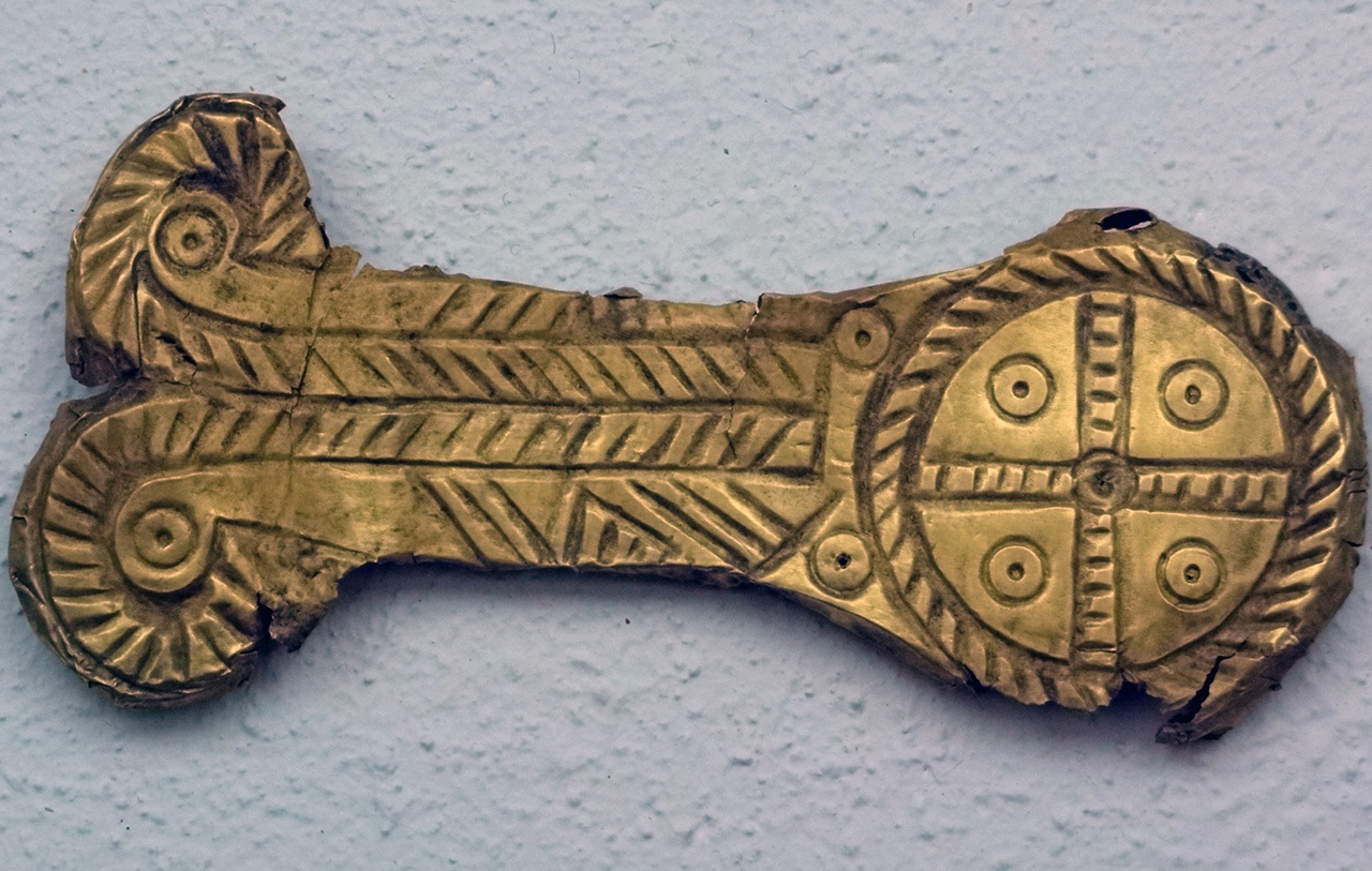 Het meest opvallende kenmerk van deze gouden voorwerpen in Griekenland is de oorsprong van hun decoratieve motieven. De concentrische cirkels en het zonnewiel met vier spaken maken geen deel uit van het traditionele Myceense symbolische repertoire.