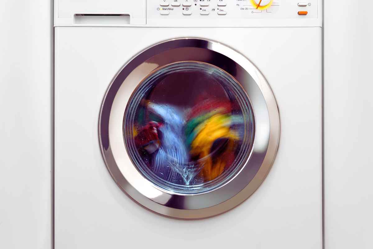 - Zodra de machine flink centrifugeert, leg je de 2-euromunt plat neer op de bovenkant van de wasmachine, ongeveer in het midden.